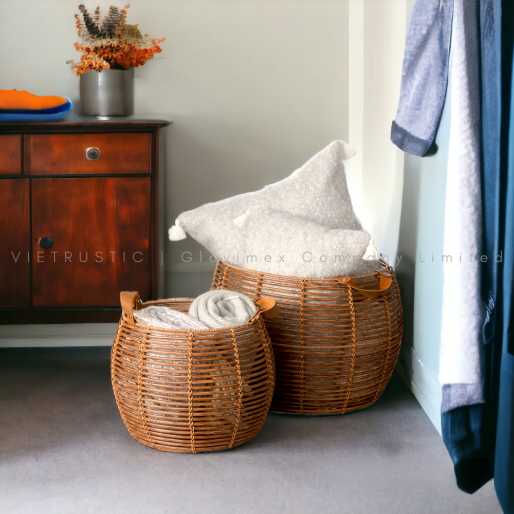 Maintain a tidy home with a welcoming look with the help of these storage baskets. Crafted by skilled and experienced craftsmen, our rattan baskets have gone through an extremely complex manufacturing process to bring you such beautiful and elegant items. With natural colors as well as creative designs, it can help you feel closer to nature, peaceful and relax in your mind after a long hard day at work. In addition, our rattan baskets are multi-functional, whether you use them to store laundry, basket or small items, you will definitely be satisfied.