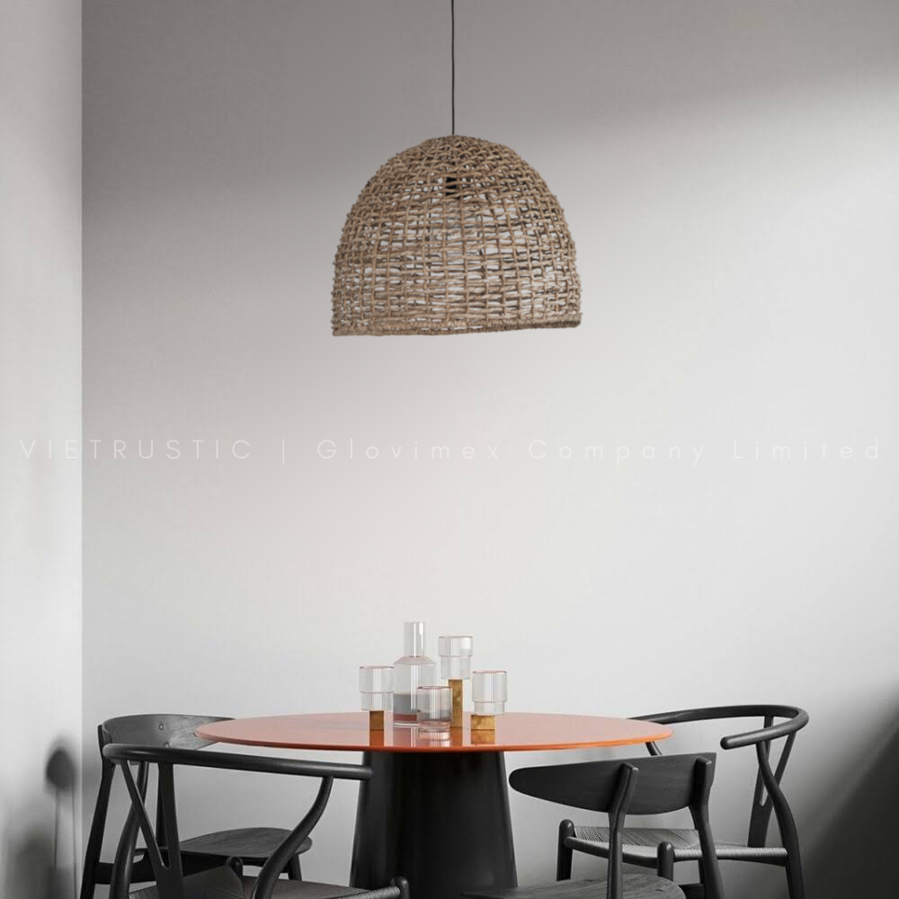 This water hyacinth lampshade helps you embrace a serene realm and transform your house into a home. With its unique workmanship, traditional weaving technique, and elegant design, this pendant lamp will stand out anywhere in your house, from the living room, bedroom, hallway, etc. to outdoor areas such as patios or porches.